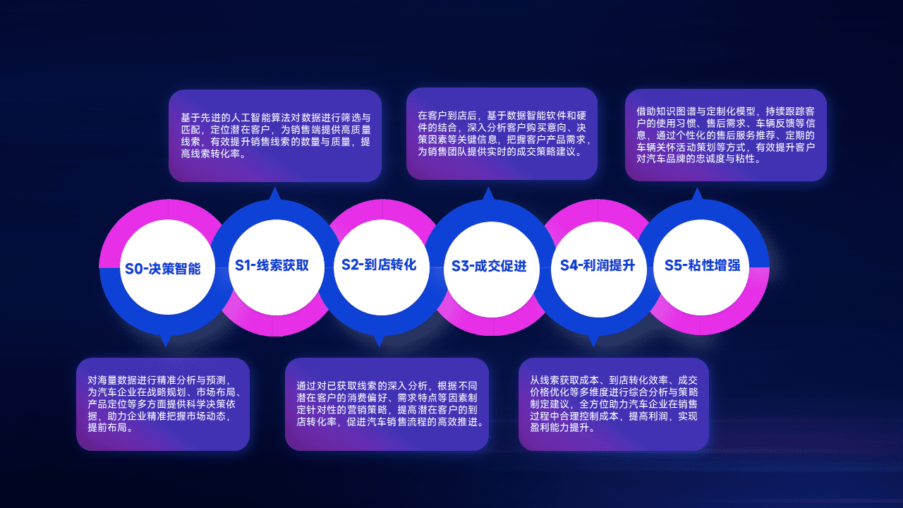 通过拓宽潜在客户来源、、优化线索分配并提高到店转化率,,,以增强销售效率。。。。同时,,,,利用线索数据不断优化分析模型,,,,有效提升转化率,,,扩大营销影响力。。